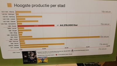 In de kerk toont een kaart aan dat Gouda met kop en schouders uitstak als het ging om de productie (en dus verkoop) van bier.