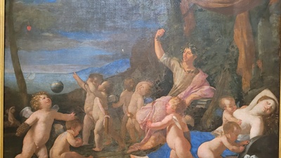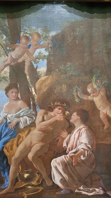 Het wordt fraai verbeeld in een schilderij van de Brugse kunstenaar Finson. De vier figuren draaien om elkaar heen. Het ziet er uit als ene gevecht. Als ‘eerbetoon’ aan de auteur is er ook het schilderij Triomf van Ovidius van Nicolas Poussin (noooooit van gehoord).