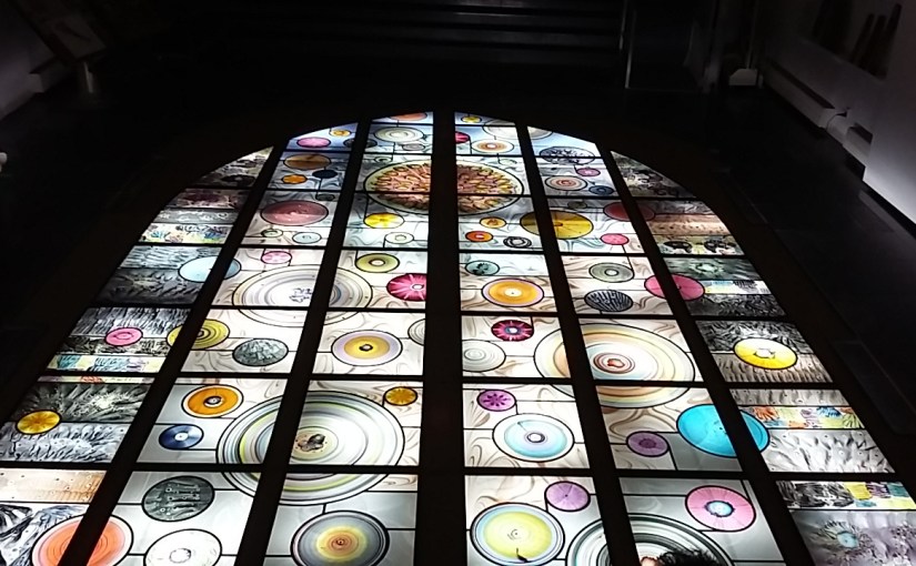 Ik raad je aan het raam te bekijken. De komende maanden kan dat van heeeeeeeel dichtbij. Als het raam op zijn plek in de kerk hangt, heb je een verrekijker nodig.