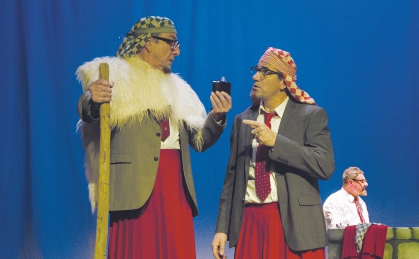 ,,Gaat het goed of gaat het knudde? Vertel: hoe staat het met de kudde?” Leuke rijm in het ‘stuk in het stuk, maar het gaat eigenlijk om de ‘strijd’ tussen de autoritaire rector (,,Tirannosaures rector’’) en de beide docenten Nederlands en biologie.De rollen van Jozef en zijn broers zoijn eigenlijk ‘leeg’, het gaat om de mensen er achter. De rector is gedreven het stuk goed op de planken te brengen. Doorspelen, wat er ook gebeurt, is zijn motto.