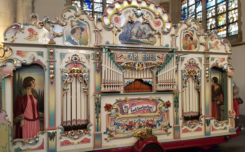 Draaiorgelmuziek zaterdagmiddag in de St.-Janskerk in Gouda. Concert op verschillende draaiorgels van Gouwenaar Adrie Vergeer, onder andere de Lekkerkerker, afgewisseld door werken op het Moreau hoofdorgel door Gerben Budding.
