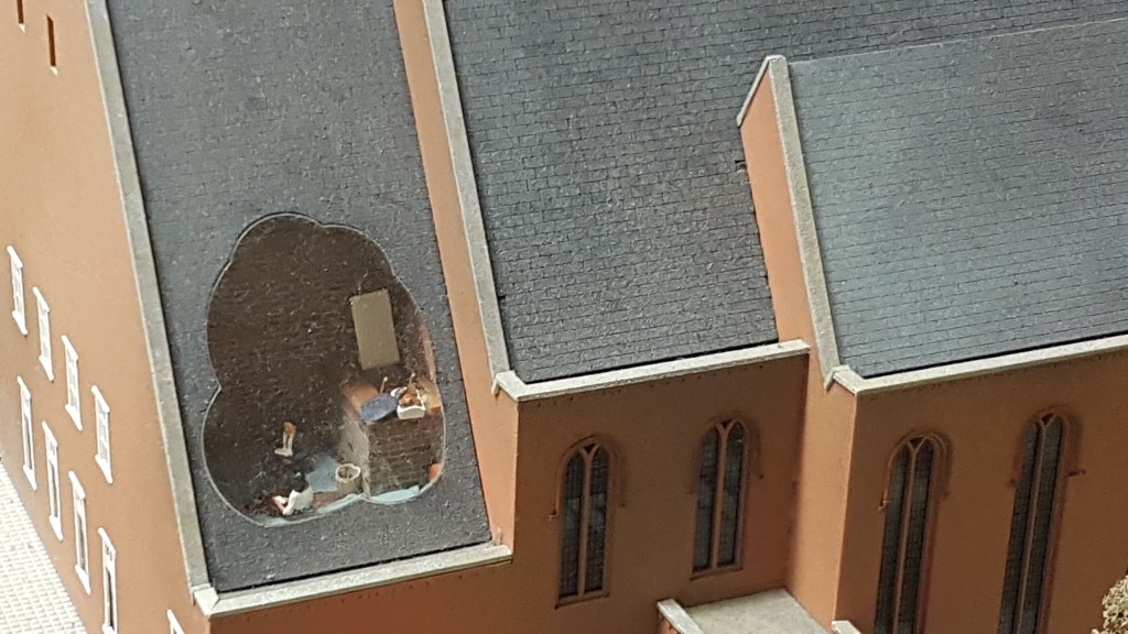 Ik ben geboren in de kosterswoning aan de zijde van de Van Malsenstraat. Is nog steeds verbonden met de kerk, maar in het schaalmodel ontbreekt het huis.