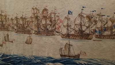 Hij zag de manoeuvres, het schieten en uiteraard de oorlogsschepen op gedetailleerde wijze vastleggen. Ook die van de beroemde de Slag bij Solebay in het rampjaar 1672. Die laatste slag is niet alleen op schilderijen te zien, maar ook op twee enorme wandtapijten die het museum een paar jaar geleden heeft weten te bemachtigen.