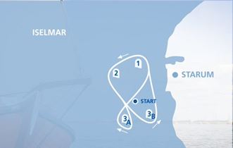 En net als wij zien al die mensen de veertien skûtsjes langs komen tijdens de wedstrijd. In het ochtendoverleg van de schippers en de wedstrijdleiding in evenementengebouw De Kaap is gekozen voor een op-en-delbaan (zie tekening hier links), een soort heen en weer route. Een bovenboei met een wegbrengboei en onderin een poort waar de schippers kunnen kiezen welke ton ze ronden. Een mooi gezicht om het varend erfgoed twee uur lang dichtbij voorbij te zien trekken.