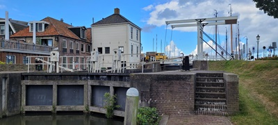 Na de koffie vertrekken wij langs de oude sluis en het Vrouwtje van Stavoren naar de dijk langs het IJsselmeer om een mooi plekje te zoeken om de wedstrijd te volgen.