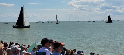 Met volop zon en de wind uit het noordwesten met kracht 3, is het goed toeven aan het water. Maar goed dat we op tijd een plekje hebben uitgezocht, want allengs wordt het drukker en drukker met toeschouwers.