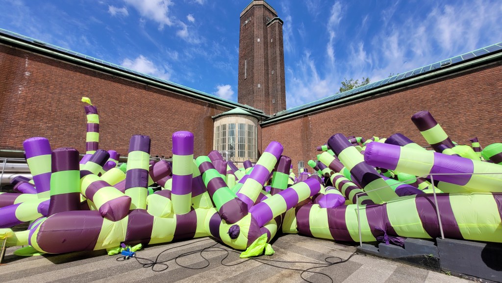 En van de moderne kunst kan ik een glimlach niet onderdrukken bij het zien van een gouden urinoir, vervaardigd door de kunstenares Sarah van Sonsbeeck. Even zo mooi om te zien is het beeld van de moedergodin van de Winti, Mama Aisa.