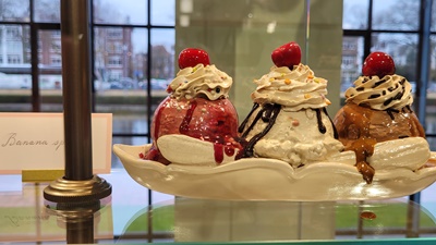 Bijzonder is ook een deel van de Berlijnse Muur. En bij het zien van giga grote blauwe slippers kun je een glimlach niet onderdrukken. Alles goed zichtbaar, want het museum kent grote, hoge ramen, dus er kan veel daglicht naar binnen.