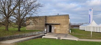 In die tuin ook een zeer modern, betonnen paviljoen. Deels ondergronds: het Waterschild. Daar wordt het verhaal verteld van het water rond het kasteel en het midden van Nederland. Water als vriend en als vijand. Zeer informatieve, zeven minuten durende film over het verleden van water als verdediging tegen de vijand.