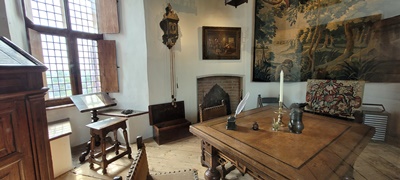 In een van de vertrekken is de woon- en werkkamer van Hooft te zien. Een tafel, een ganzenveer en noem maar op moeten verbeelden dat hij hier zijn toneelstukken en gedichten schreef. De ridderzaal waar de Muiderkring (groep letterkundigen en geleerden rond P. C. Hooft) bijeen kwam. Voor de hongerige maag waren er maaltijden, bereid in de keuken die ook te bezoeken is. Een audiotour geeft uitleg.